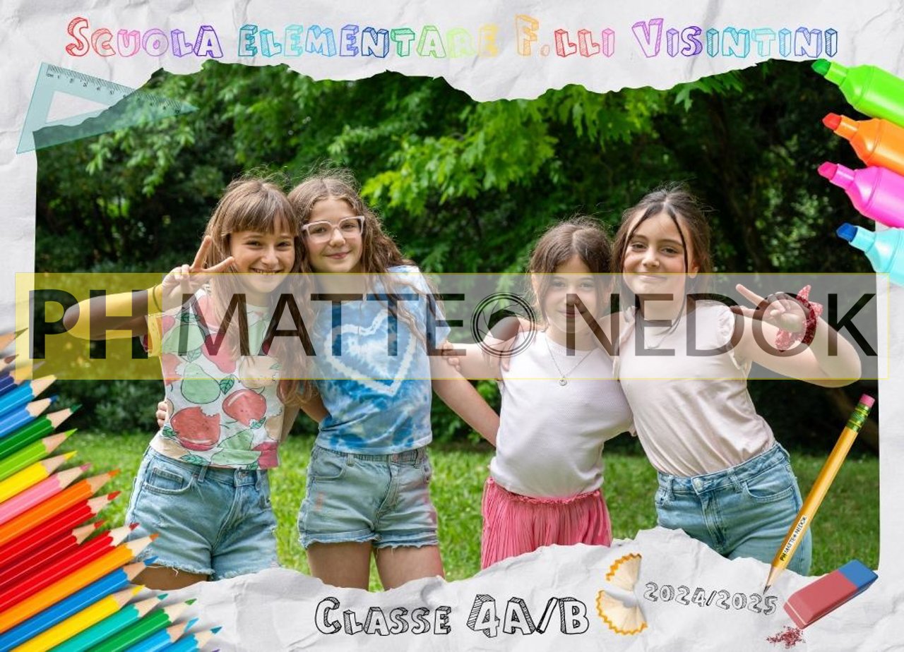 “Classe 4ªA – Elementari – A.S. 2024/25” Nome scuola, classe e anno incisi in stile moderno.